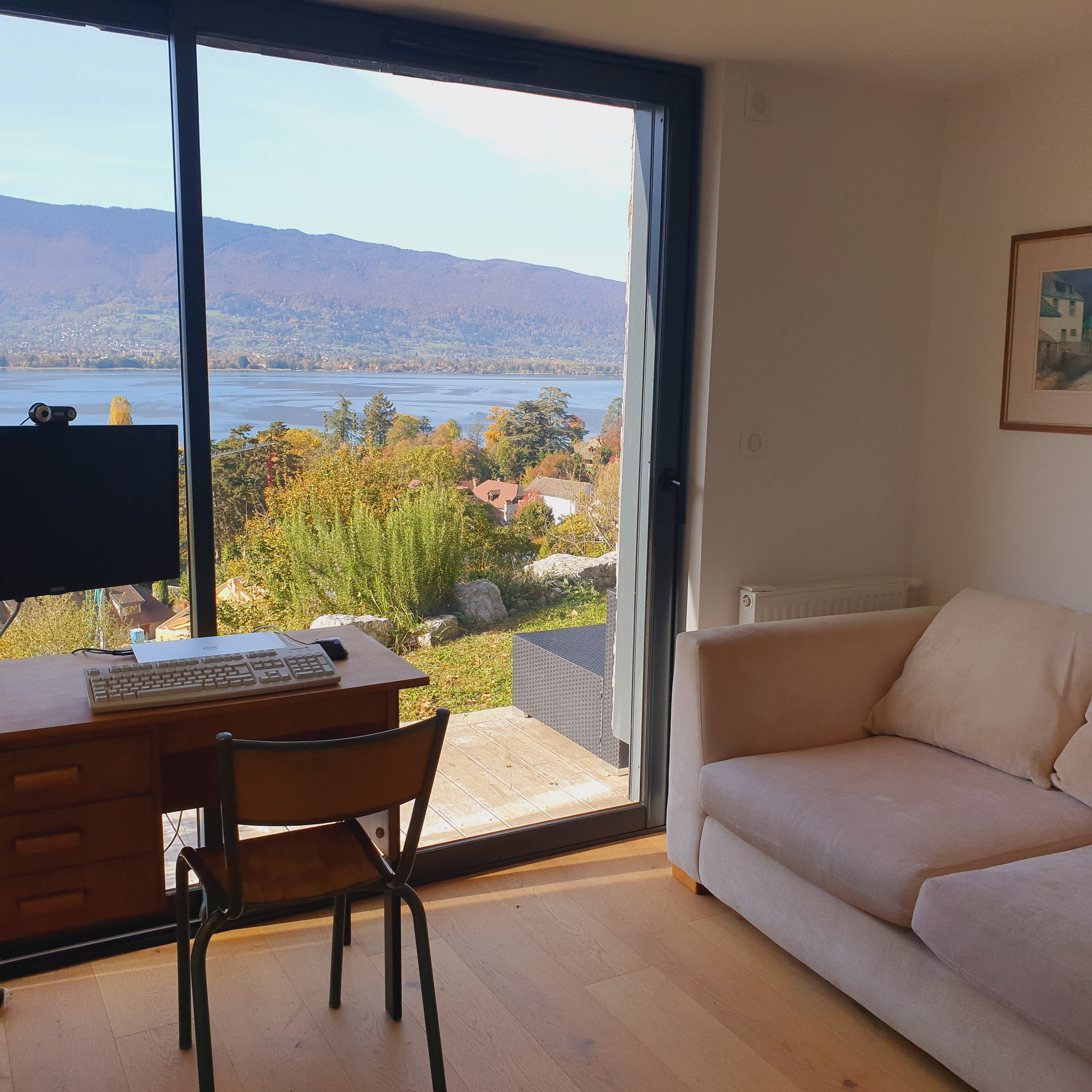 Experience tranquility and comfort at The Lake Office Annexe, and enjoy a serene and spectacular spot for remote work. It can be rented with Talloires Lake House or Talloires Lake Apartment.